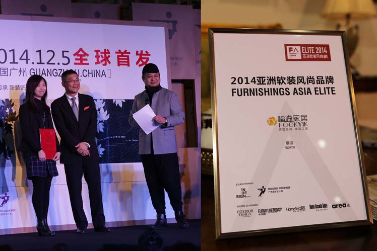 福溢家居獲“2014亞洲軟裝風尚品牌”榮譽稱號