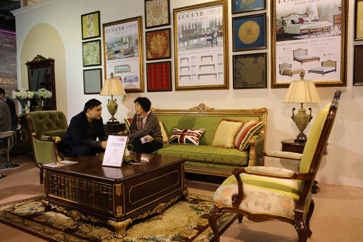 在人群之中,充滿濃郁典雅氣息的福溢家居3B16號展廳布置,格外惹人矚目。FOOKYIK攜歐式新品家具閃耀亮相,英、法、美、意風匯聚一堂,風采斐然,引來眾多觀眾駐足稱贊。